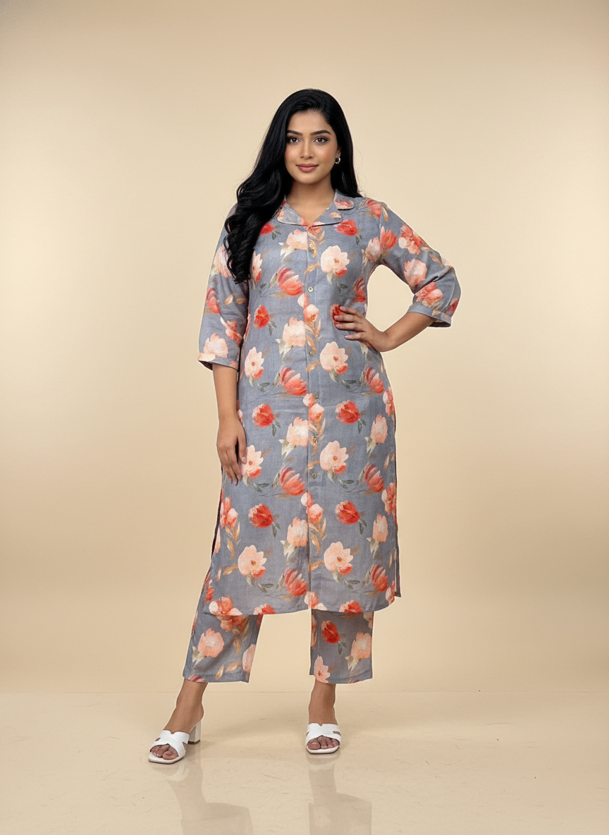 Effortlessly stylish lenin coord set designed for office professionals and college students. Features a distinctive double collar top paired with comfortable parallel pants in refreshing light green. Premium lenin fabric offers breathability for all-day comfort during meetings, lectures, and campus activities.